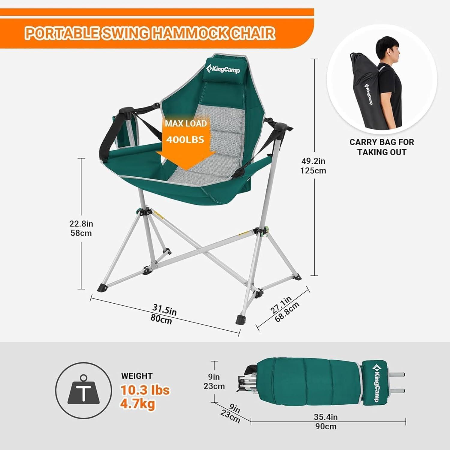 【Quick Setup, Easy Portability】 No tools, no hassle — thanks to the all-in-one quick-open frame system, this portable hammock chair folds and unfolds in seconds. Weighing only 10.3 lbs, it includes a durable Oxford shoulder carry bag, making it your go-to camping rocking chair for beach days, hiking trips, or backyard lounging.