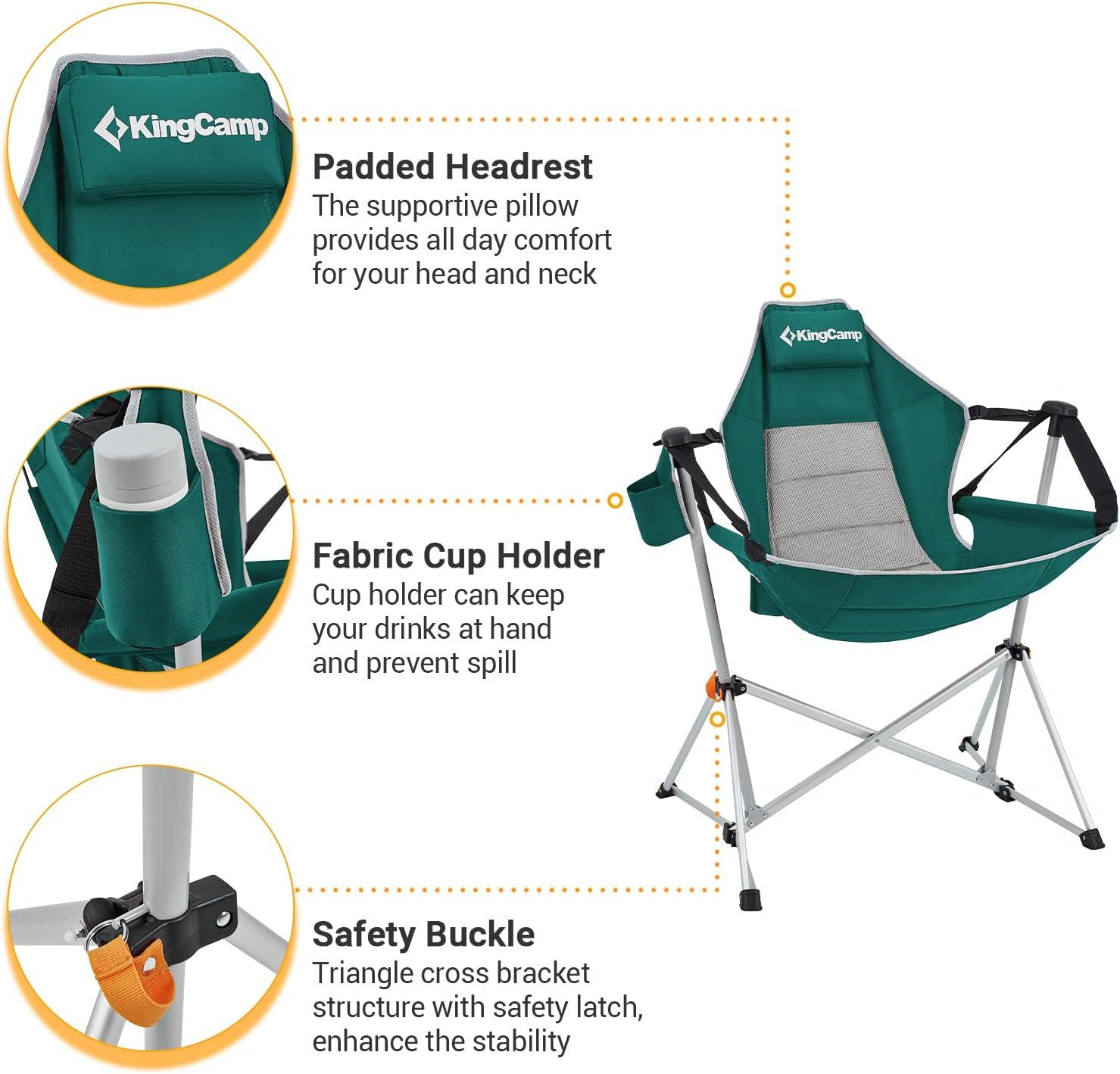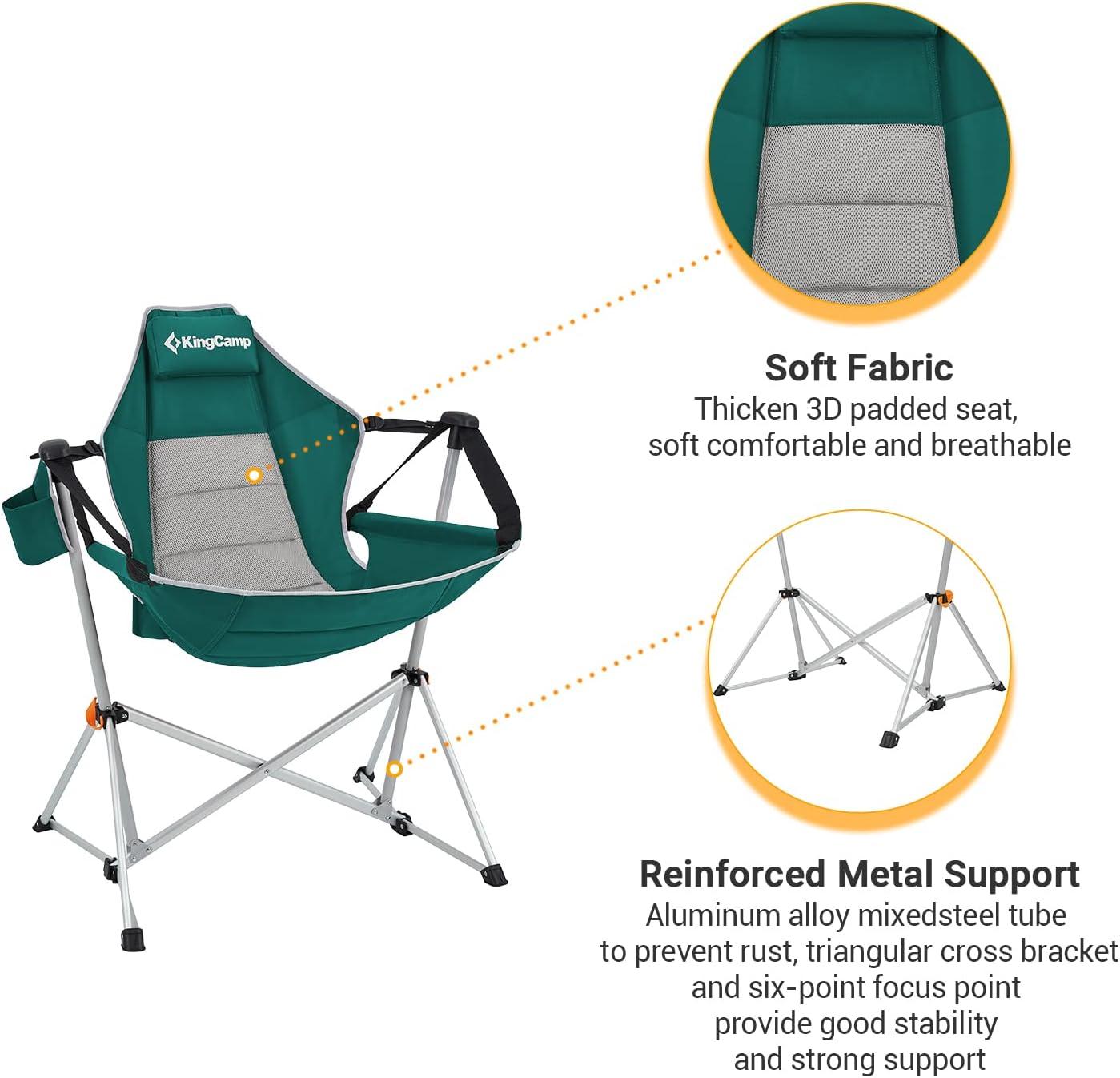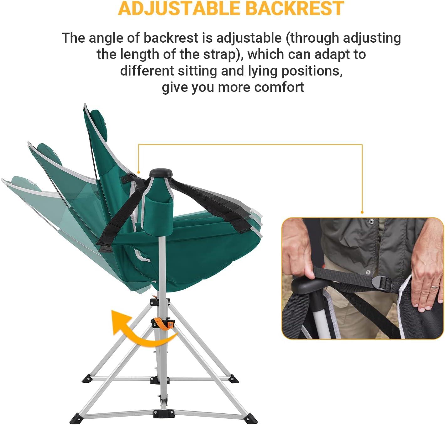 【Functional Design with Thoughtful Details】 From the cup holder for easy drink access, to the padded hard armrests for added support, every detail is made for convenience. The padded pillow, adjustable seatback, and breathable mesh lining add extra touches of luxury to your foldable hammock chair experience.